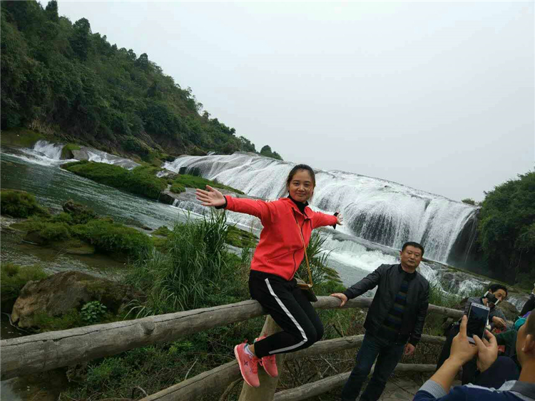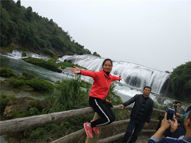 第三站我們來到了亞州最大的瀑布—黃果樹瀑布,奔騰的河水自70多米高的懸崖絕壁上飛流直瀉犀牛潭,發(fā)出震天巨響,如千人擊鼓,萬馬奔騰,聲似雷鳴,遠震數(shù)里之外,大家也被此番美景所震撼,紛紛舉起了手中的相機。