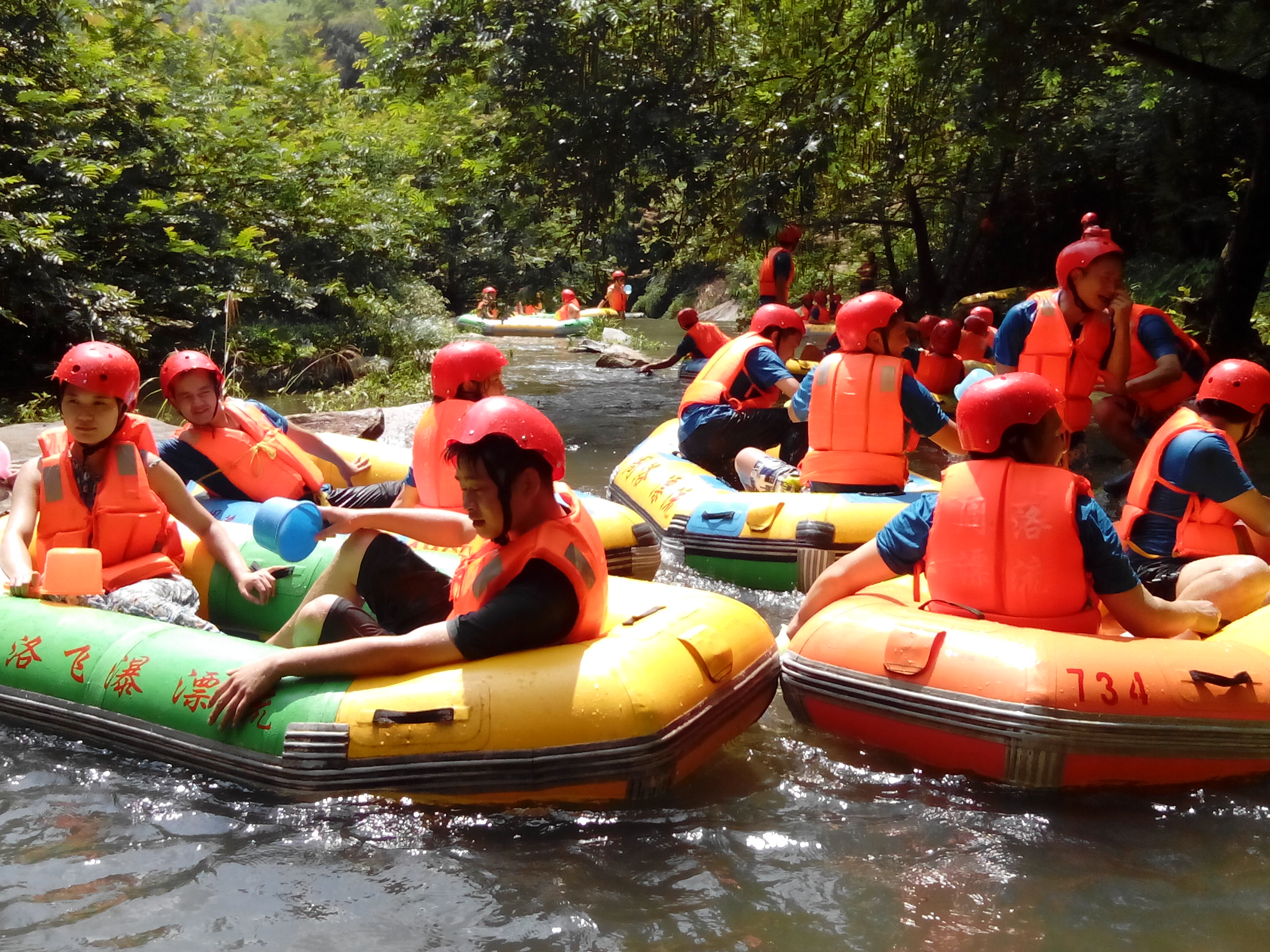 在活動中,施比龍的團隊始終伴隨著和諧、溫馨的氣氛所籠罩。整個景區隨處可見山隨水轉、水繞山行、綠樹成蔭,我們仿佛是一群置身在世外桃源的仙人。在探險過程中,有驚喜、有感動、有快樂,大家互幫互助共同進退。在整個漂流過程中,從起點出發:穿越時光隧道的浪漫的愜意,十八米落差的飛瀑激流遏飛舟,沿林木成蔭的水道跌宕起伏順流之下,時而急流澎湃,飛艇沖浪;時而平緩如砥,泛艇戲水;無法言語的“刺激和釋放的”感覺……