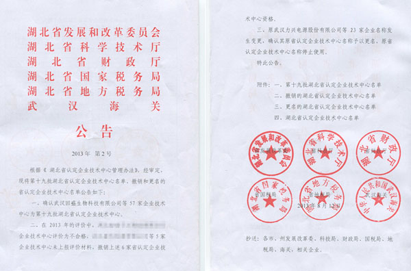 回盛作為湖北省動保龍頭,全國獸藥制劑30強企業,先后被授予“湖北省農業產業化重點龍頭企業”、“湖北省創新型試點企業”、“武漢市十佳科技創新企業”等榮譽稱號。2008年被認定為“湖北省獸藥工程技術研究中心”依托單位,成為湖北省唯一一家具有省級工程中心的獸藥企業。2013年回盛與武漢大學鄧子新院士專家團隊緊密合作,成立了“院士專家工作站”。