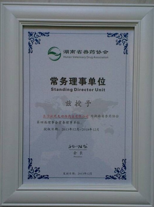 熱烈祝賀長沙施比龍動物藥業有限公司當選為湖南獸藥協會第四屆常務理事單位