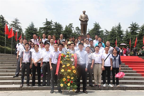 5月27日參加《2014年首屆回盛·施比龍母豬增產創新峰會》的來賓們,興高采烈乘坐豪華大巴去參觀偉人毛主席故居韶山和劉少奇故居花明樓。從長沙出發,車行約四十分鐘,到達韶山,只見群山環繞,林海莽莽,池塘碧清,紅旗飄舞。依次參觀了毛主席紀念館、毛主席故居、毛主席銅像廣場。來賓們代表公司向毛主席銅像獻花,虔誠的向毛主席三鞠躬,以表達內心的敬意。下午,來賓一行去花明樓參觀了劉少奇故居。
