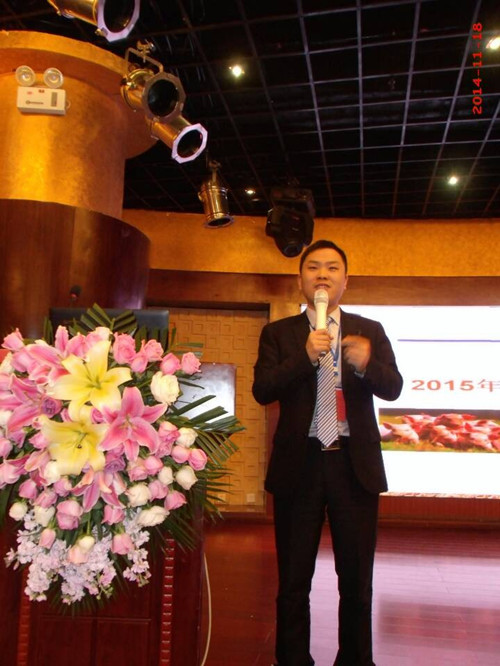 會議在回盛?施比龍總經理孫國勝先生熱情洋溢的歡迎辭中拉開序幕,孫總對各位嘉賓的到來表示熱烈歡迎,同時對目前的市場行情和未來的發展趨勢進行了分享與互動,并預祝經銷商伙伴及嘉賓在本次活動中各有所獲,開心愉悅。接著由營銷副總劉明洋先生、技術服務部經理羅云富老師和營銷總監助理范小年先生分別針對公司產品超繁組合、冬春季常發疾病防控和2015年銷售政策與參會人員學習、共享。
