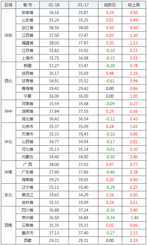 2021年01月18日全國內三元生豬價格行情漲跌表