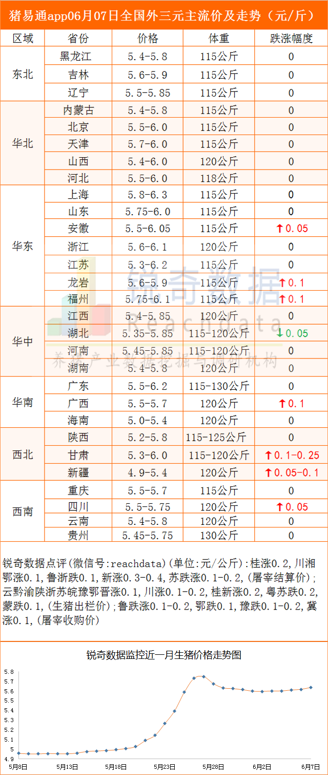 06月07日各地豬價(jià)走勢(shì)-跌漲調(diào)整