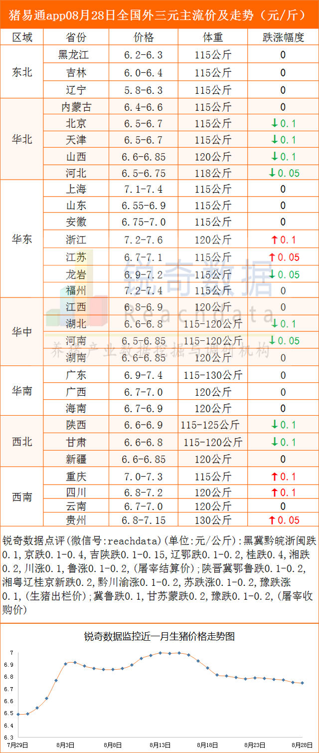 08月28日各地豬價走勢-跌漲調整