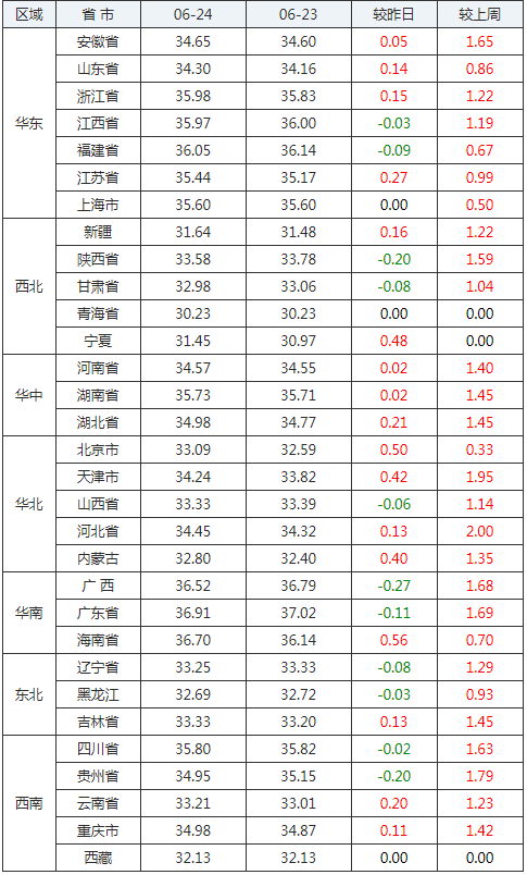 2020年06月24日全國(guó)外三元生豬價(jià)格行情漲跌表