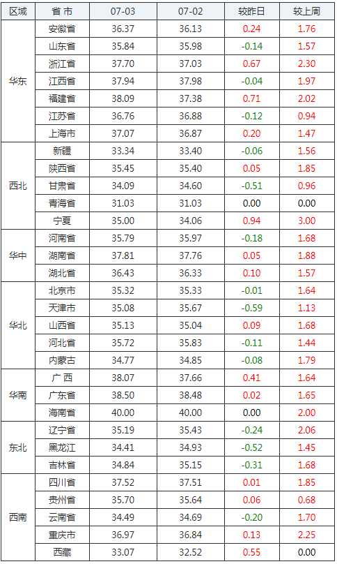 2020年07月03日全國外三元生豬價格行情漲跌表