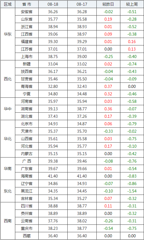 2020年08月18日全國(guó)外三元生豬價(jià)格行情漲跌表